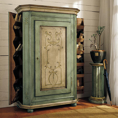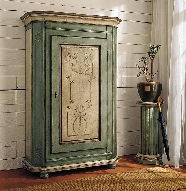 Armadietto molto pratico in luoghi con poco spazio. Disponibile con finitura laccata in vari colori o lucido anticato.