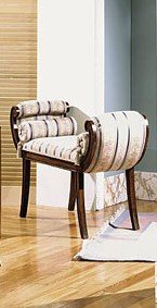 Panchina imbottita in stoffa adatta in ogni angolo della casa. Disponibile in vari colori di stoffa, tronco lucido brillante , anticato oppure laccato in vari colori.