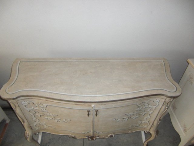 Importante credenza sagomata e intagliata.